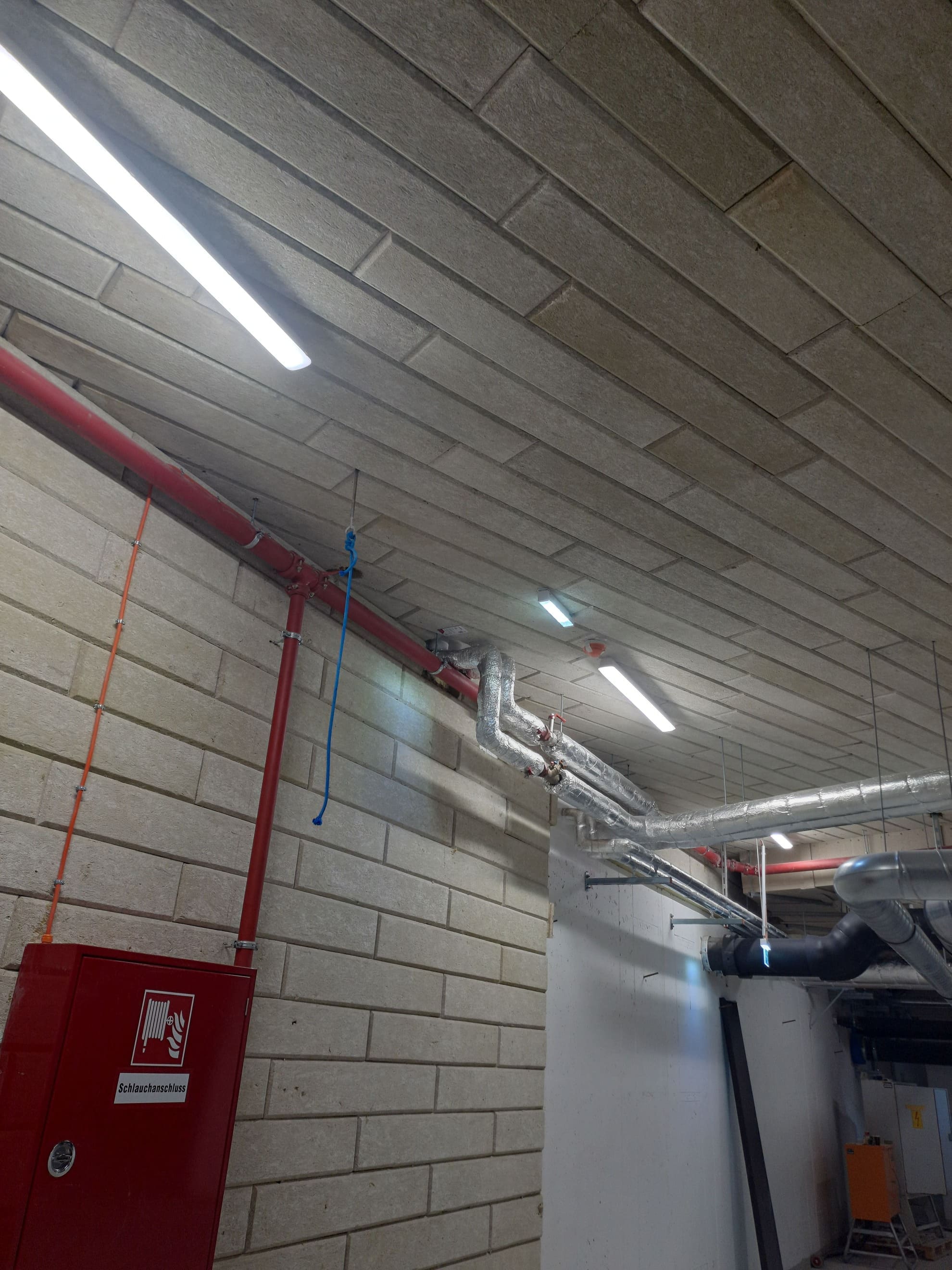General and emergency lighting systems were installed at the facility. Luminaires were mounted in technical rooms and connected to existing electrical circuits. Illuminated Exit signs were installed to ensure safe orientation and evacuation. The emergency lighting system was tested for proper operation in case of a main power failure. All works were carried out in compliance with applicable standards and safety requirements.