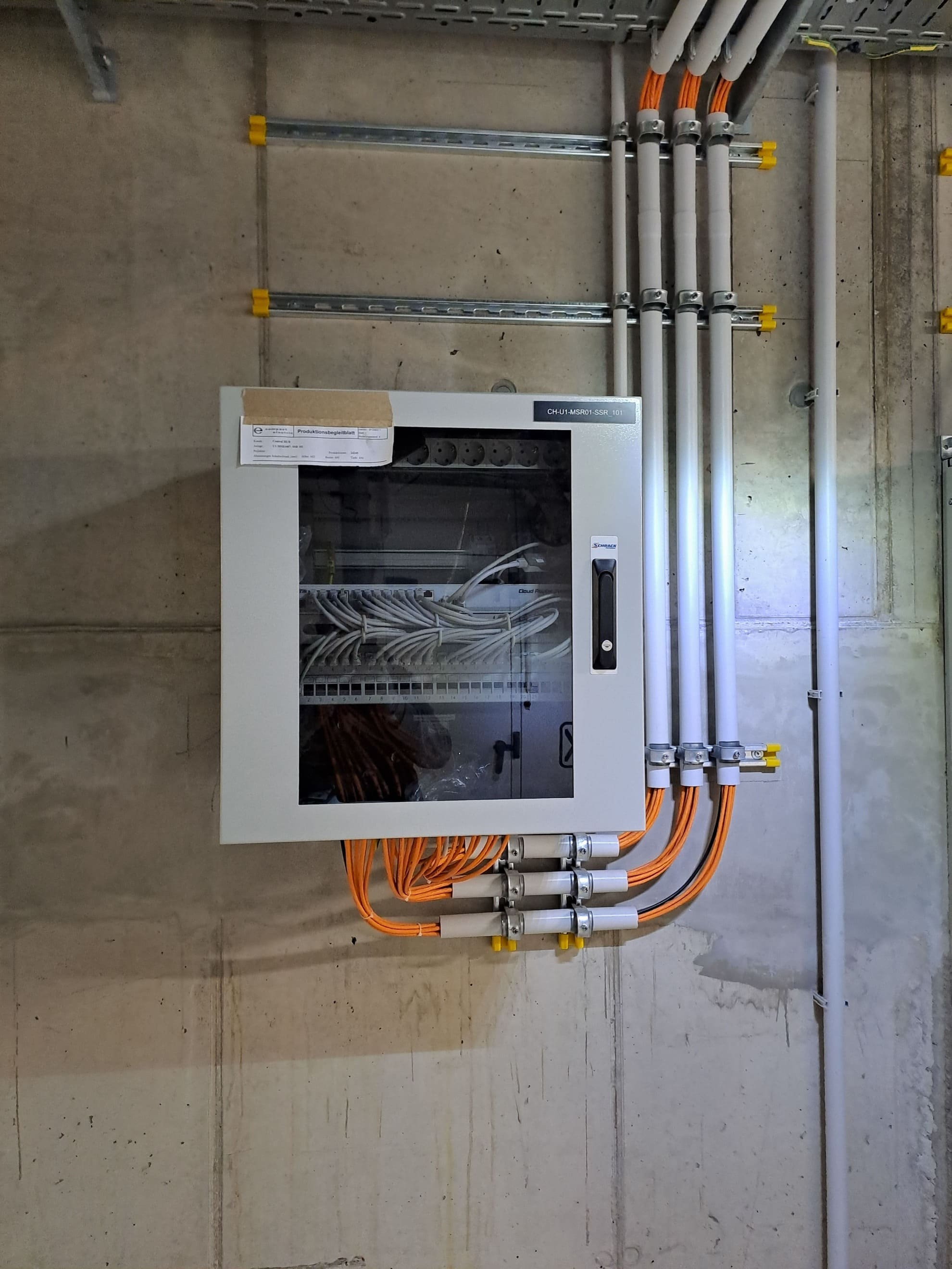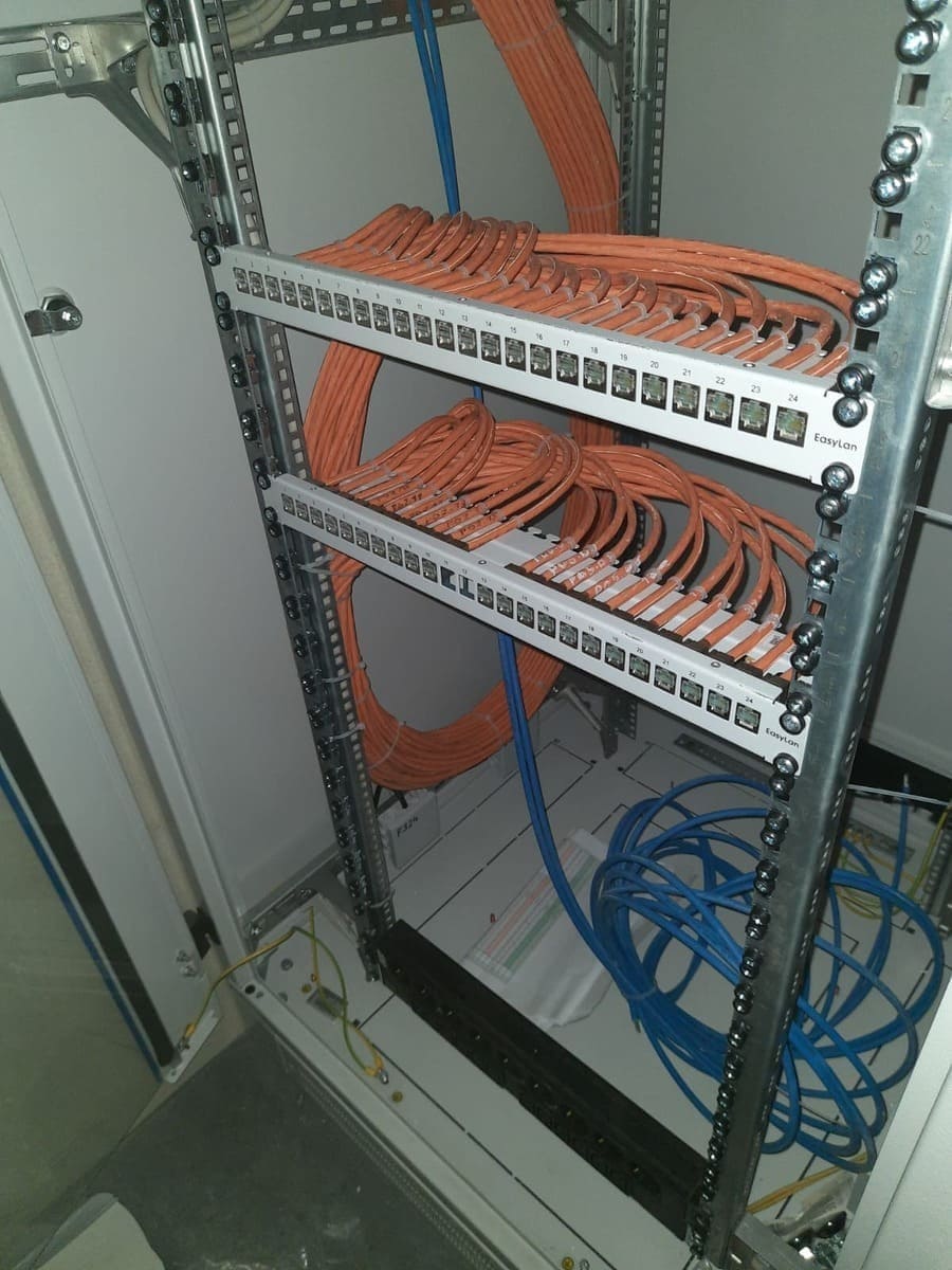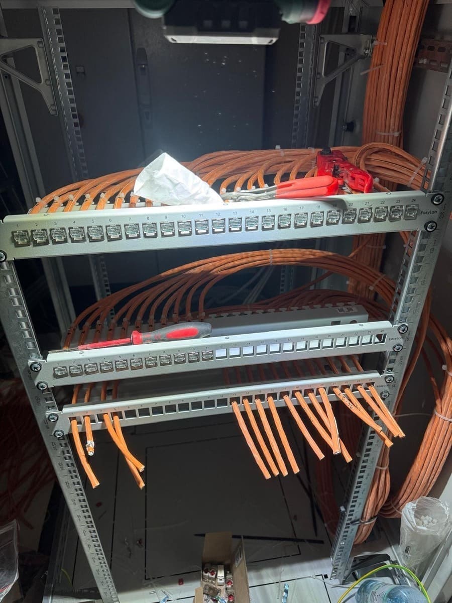 Server and distribution cabinets were installed, including cable routes and cable fixings. CAT7 internet cables were routed and neatly organized inside the cabinets and along the cable pathways. Patch panels, servers, and network equipment were connected with structured cable management. The works ensure reliability, easy maintenance, and proper operation of the IT infrastructure.