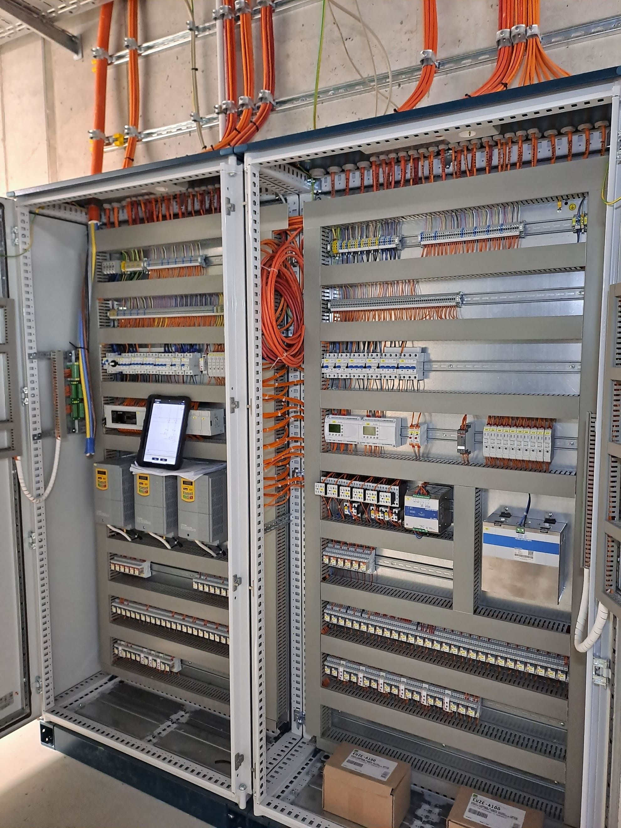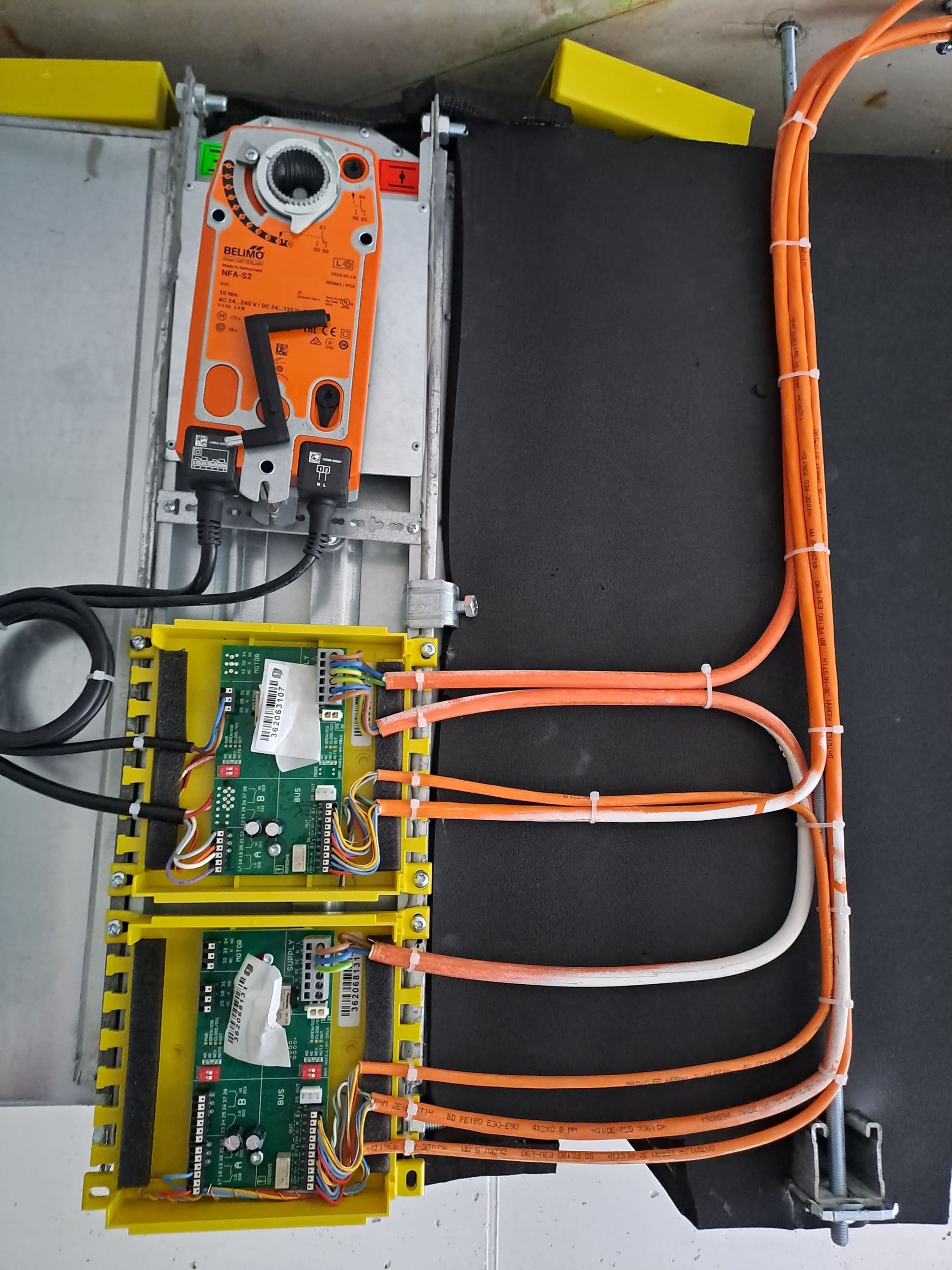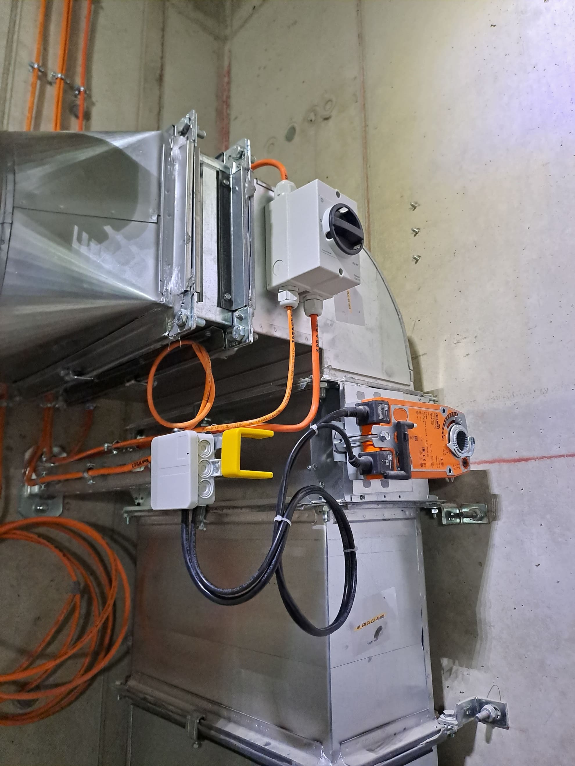 Electrical installation and automation works for ventilation systems were carried out at the site. Installation and connection of damper actuators, routing of power and control cables, and installation of junction boxes and control elements were completed. Installed and fully wired MSR / BMS control cabinets include circuit breakers, relays, and terminal connections. Cable routes are neatly organized and labeled. The works were executed with a focus on reliable operation, easy maintenance, and future system expansion.